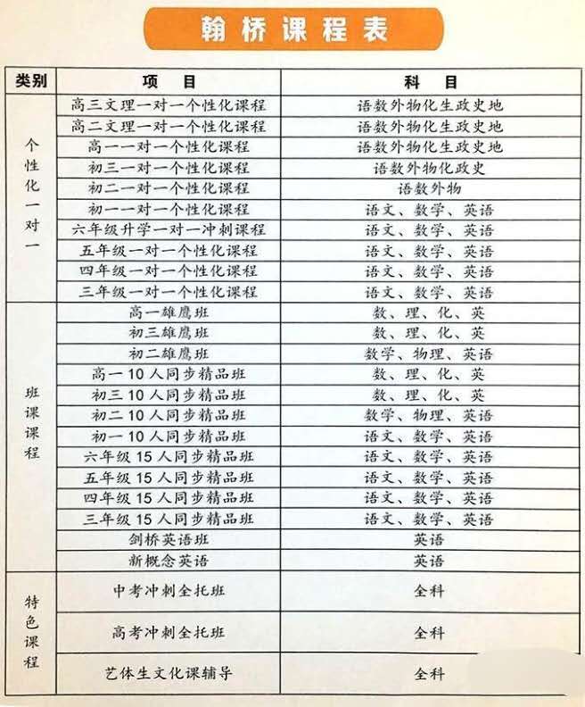 各年级一对一课程