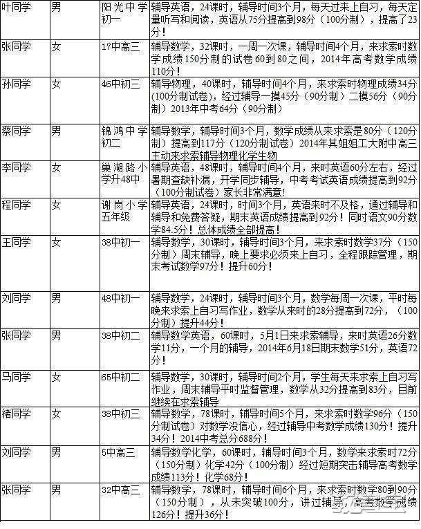 部分学员辅导效果一览表: